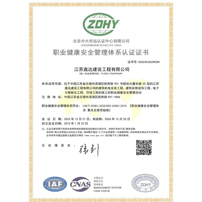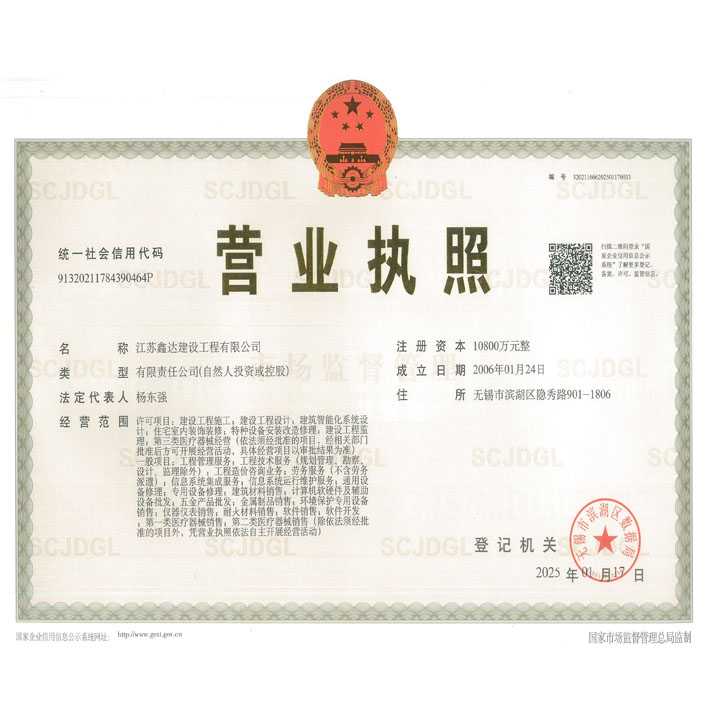 • 机电工程施工总承包壹级 • 电子与智能化工程专业承包壹级 • 建筑机电安装工程专业承包壹级 • 消防设施工程专业承包贰级 • 防水防腐保温工程专业承包贰级 • 建筑装修装饰工程专业承包贰级 |