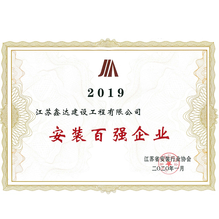 Top 100 installation enterprises in Jiangsu Province in 2019