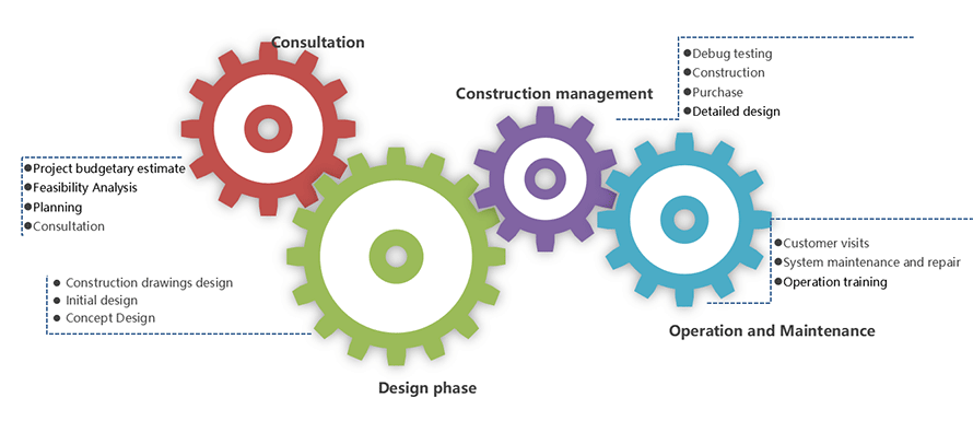 We provide you with the whole process services of consulting, design, construction, management, operation and maintenance of the project!