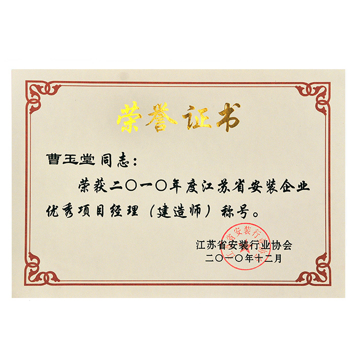 无锡市安装行业QC小组成果二等奖(李一飞)