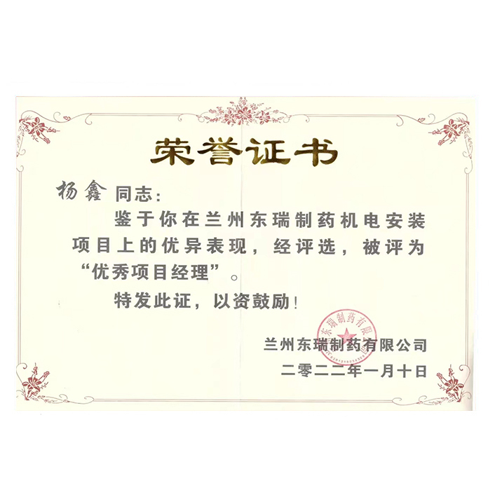 2021年兰州东瑞制药优秀项目经理(杨鑫)